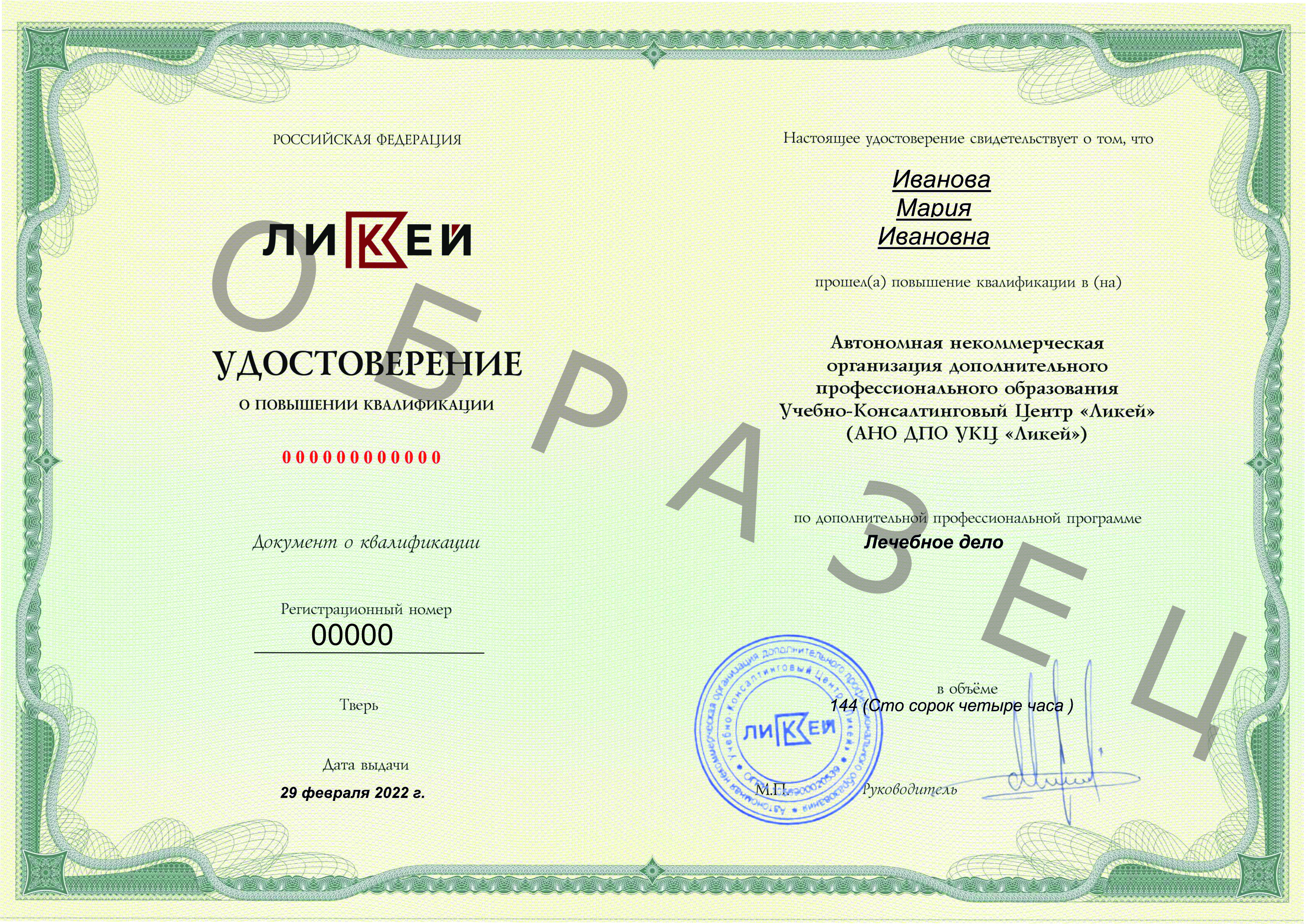 | Выдаваемый документ | Удостоверение о повышении квалификации |